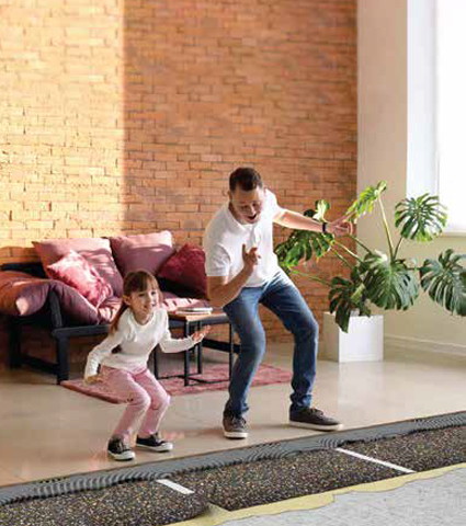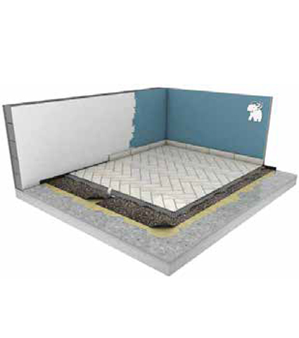 ♦ לבידוד רעש הולם בהדבקה ישירה על ריצוף קיים/על החומר לאריחי קרמיקה, רצפות וניל, פרקט או למינציה במבני מגורים, מלונות, בית ספר, משרדים, בתי מסחר ועוד בזמן שיפוצים או במבנה חדש.